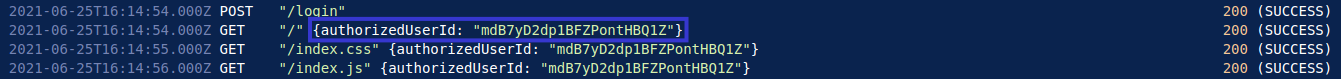 Once the user has logged in using their credentials, I notice that they are assigned an authorised user ID. For IP 192.168.0.50, this user ID is 5Eckr4DTaLLDaDMGqmMJ3g.